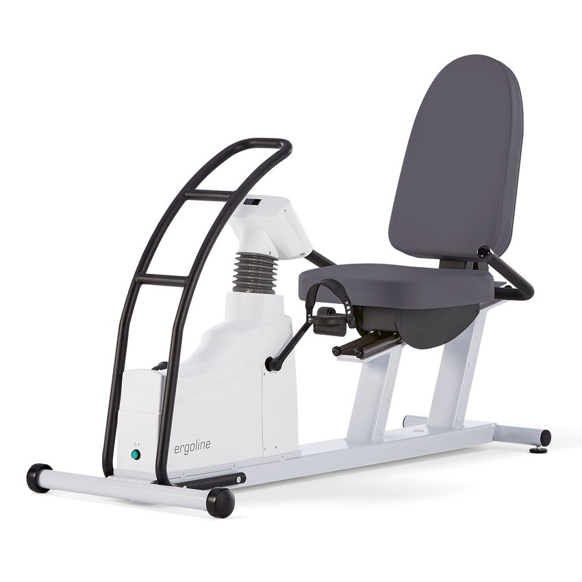 Konstruiert für ein zulässiges Patientengewicht von bis zu 300 kg, ermöglicht das ergoselect 600 die Durchführung von Ergometrien und Herz-Kreislauftrainings, auch mit schwer adipösen Patienten. Aber auch älteren oder behinderten Patienten steht mit dem ergoline-Recumbent-Ergometer die richtige Belastungs- und Trainingseinheit zur Verfügung. Details wie die 3-fach verstellbare Rückenlehne, Spezial-Pedalschuhe mit einstellbarem Tretabstand und Zusatzpolster, die den Abstand zwischen Tretachse und Sitzfläche zusätzlich vergrößern, ermöglichen eine optimale Anpassung an den jeweiligen Patienten.