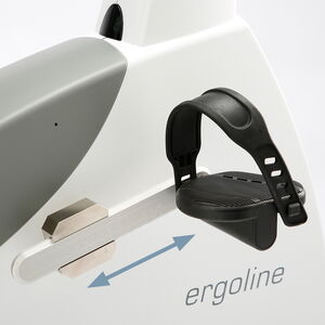 The adapter enables horizontal shifting of the saddle by approx. 10 cm. In conjunction with the adjustable pedal cranks and the dual handlebar adjustment (height and tilt), this makes it possible to set the most ergonomically effective training position for every patient. Using the horizontal saddle adjustment option reduces the maximum permitted patient weight to 150 kg.
