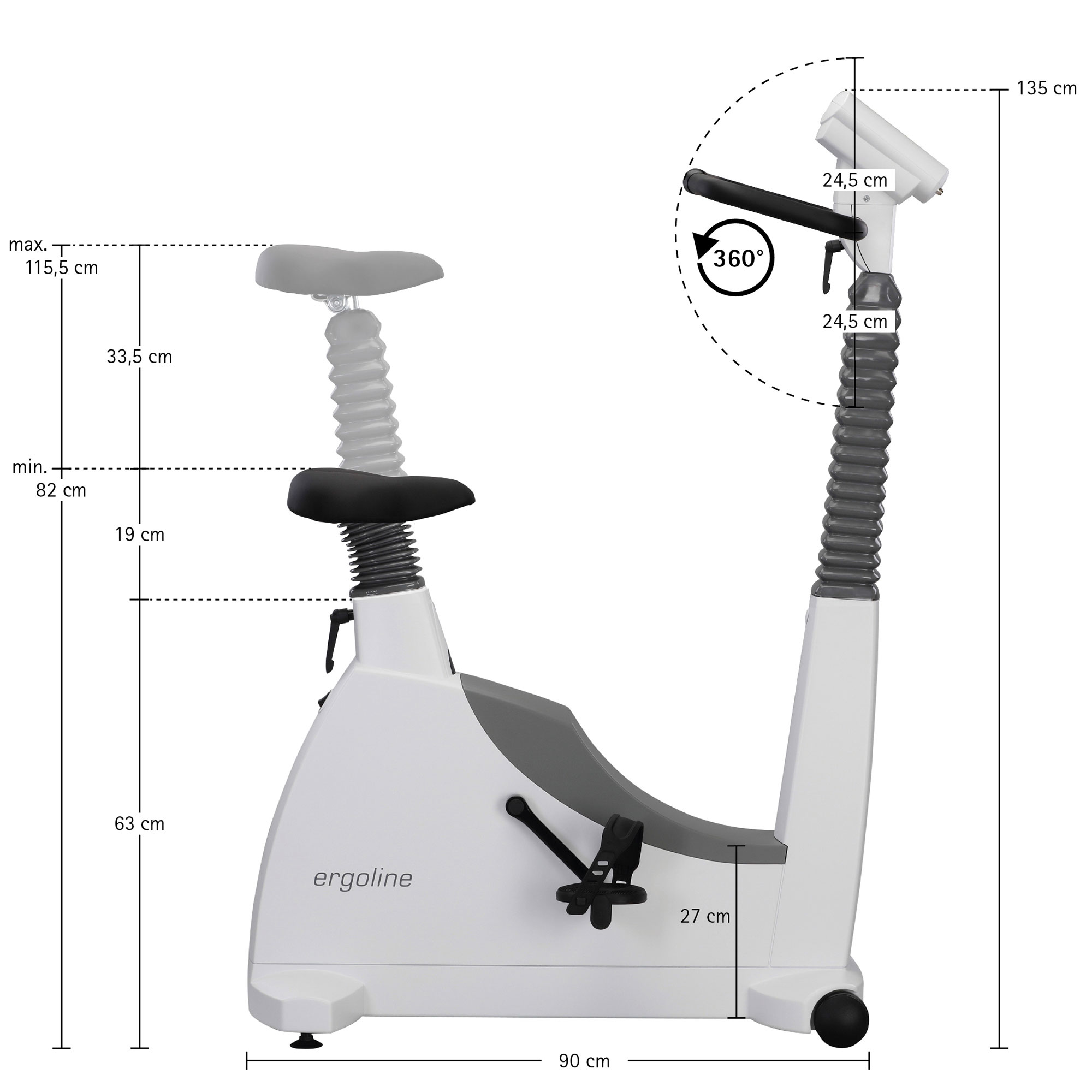 The stepless mechanical seat adjustment and sturdy design ensure the safe operation of the ergometer, even with patient weights up to 160 kg.
